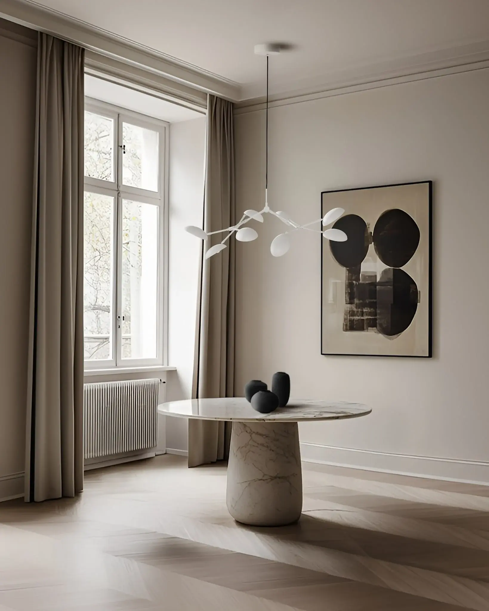 Вы почти ощущаете движение люстры Drop, словно это живая скульптура, которая легко подстраивается под окружающую обстановку. Этот поразительный дизайн не просто занимает пространство — он преображает его, излучая элегантность и мастерство. Люстра Drop, созданная в духе вневременной эстетики модернистского освещения 1950-х годов, отдает дань прошлому, но при этом смотрит в будущее. Ее плавная, органичная форма воплощена в 14 гибких регулируемых кронштейнах, которые позволяют создавать бесконечные композиции, менять угол наклона и выражение. Плавно изогнутые плафоны создают динамичную игру света, благодаря чему каждый момент кажется уникальным. Люстра, изготовленная с особым вниманием к деталям, доступна в необработанном оксидированном виде и в трёх изысканных вариантах отделки металлом: латунь, бронза и воронёная сталь. Каждый металлический корпус тщательно обработан вручную, что придаёт ему изысканный, рукотворный вид. Люстра Drop выходит за рамки традиционного освещения — это изысканное воплощение мастерства, плавности и вневременных инноваций.